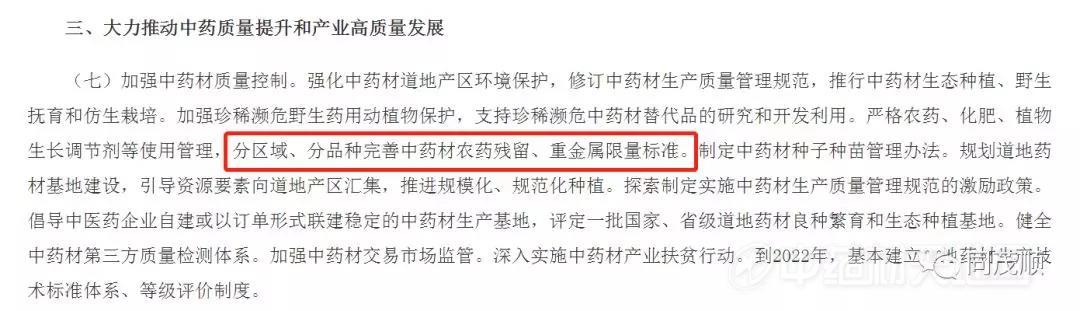 4、國(guó)務(wù)院發(fā)文:分區(qū)域、分品種完善中藥材農(nóng)藥殘留、重金屬限量標(biāo)準(zhǔn);建立最嚴(yán)謹(jǐn)標(biāo)準(zhǔn)