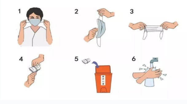 答:手不要接觸口罩對(duì)外的一面;如果是系帶的口罩,要先解開下面的帶子,再解開上面的帶子;用手指捏到口罩的帶子或者掛耳的帶子丟到垃圾桶;丟掉口罩后要洗手。