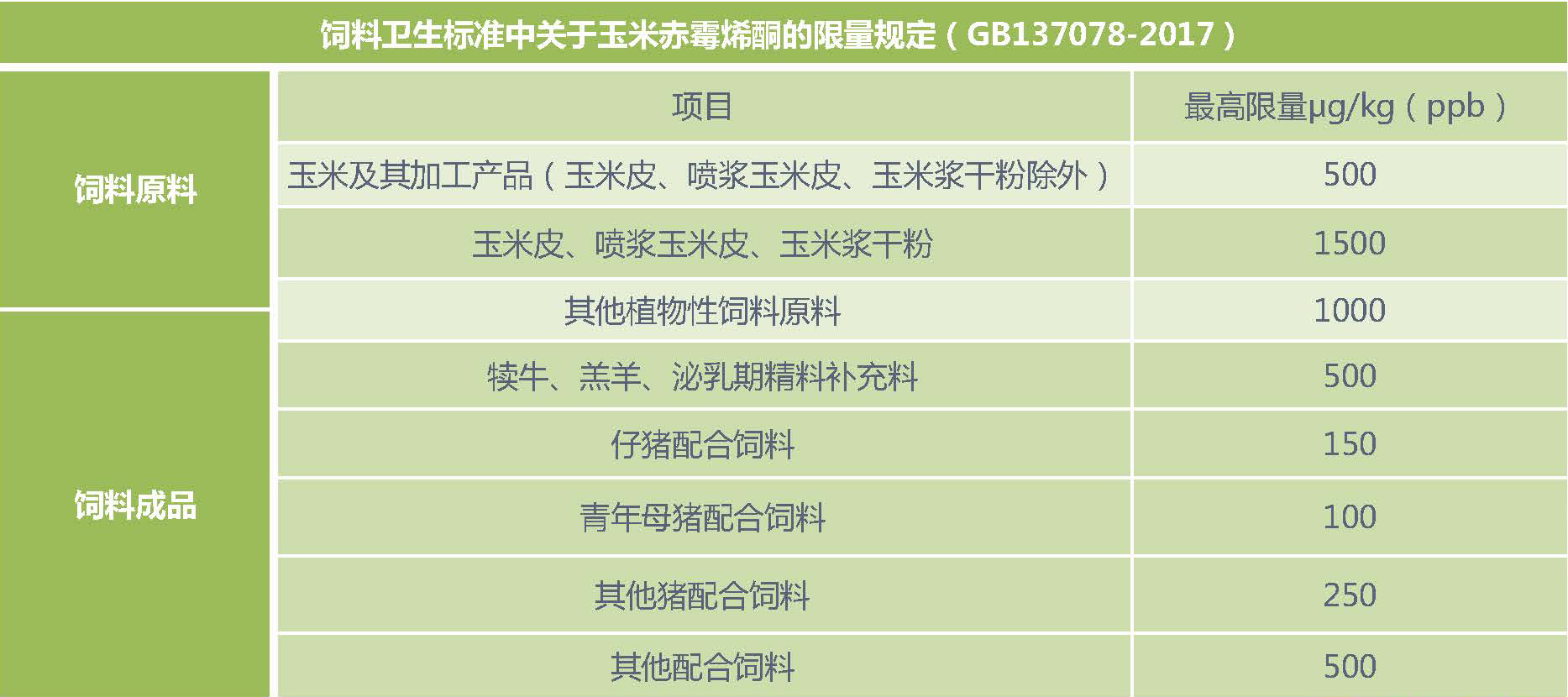 ◆ 新飼料衛(wèi)生標準中玉米赤霉烯酮的限量標準