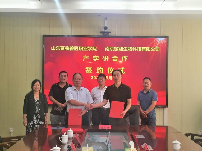 9月1日,南京微測(cè)生物科技有限公司與山東畜牧獸醫(yī)職業(yè)學(xué)院產(chǎn)學(xué)研合作簽約暨實(shí)驗(yàn)儀器捐贈(zèng)儀式在學(xué)校辦公樓三樓會(huì)議室舉行。南京微測(cè)生物科技有限公司總經(jīng)理肖理文、學(xué)校副校長(zhǎng)周其虎出席儀式。
