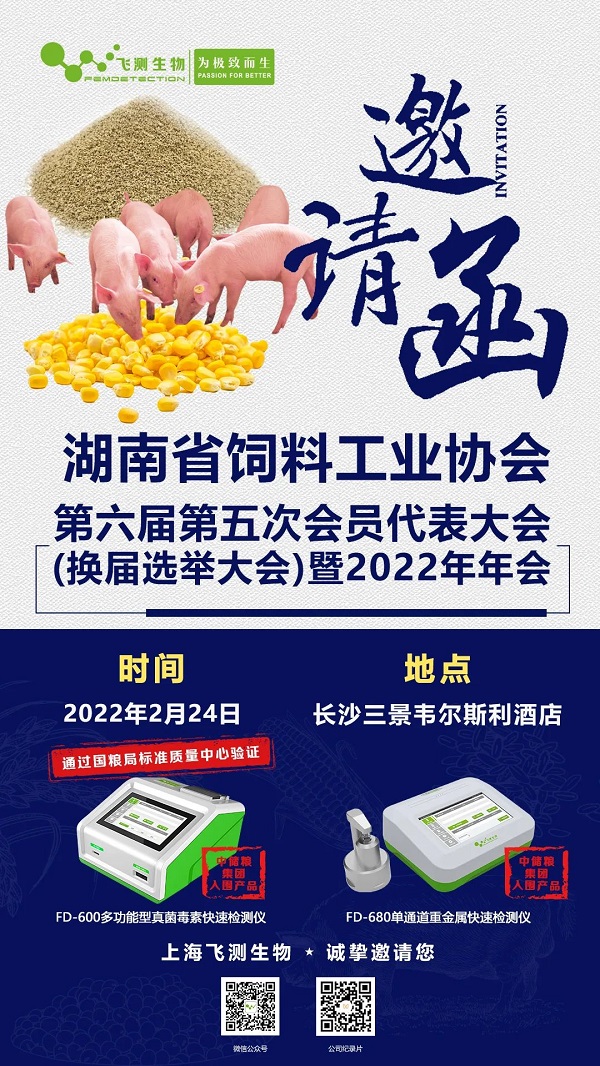湖北省飼料工業(yè)協(xié)會全面推進豆粕減量替代行動專題會議 暨2022年年會 將于3月16-17日 在武漢市 中南花園飯店●南苑樓四樓會議中心 舉辦 上海飛測生物科技有限公司 誠摯邀請大家前來參觀~